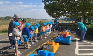 ゴーカートの乗車、正しい歩行横断を行いました。