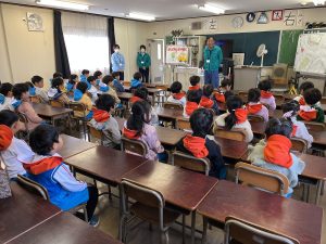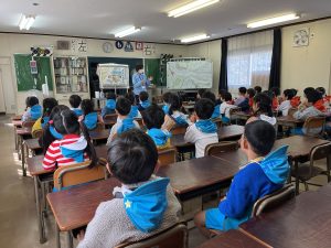 最初は建物内の教室に入って、小学校で使う机に座りちょっぴり緊張しながら、