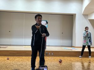 ♪もしもしかめよ~かめさんよ~、のうたに合わせてけん玉をしました。